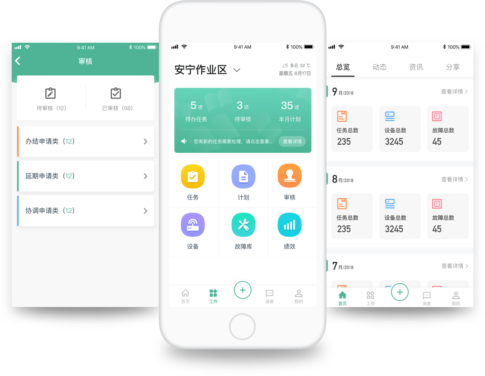 作(zuò)業(yè)區(qū)管理(lǐ)系統是(shì)為(wèi)西(xī)南(nán)管道(dào)局昆明(míng)輸油←氣分(fēn)公司定制(zhì)的(de)作(zuò)業(yè)區(qū)運維管理(lǐ)系統。該系統基于工(gōng)作(zuò)流進行(xíng)的(de)設計(jì₹),并在設計(jì)時(shí)融入了(le)PDCA(閉環管理(lǐ)理(lǐ)論),将工(gōng)作(zuò)管理(l×ǐ)中的(de)Plan、Do、Check、Action四個(gè)步驟有(yǒu)效地(dì)串聯起來(lái),形成高(gāo)效的(de)管理(lǐ)體(tǐ)系。系統包含了(le)☆設備全生(shēng)命周期數(shù)據管理(lǐ)、計(jì)劃管理(lǐ)、任務管理(lǐ)、數(shù)據統計(jì)分(fēn)析, 根據具體(tǐ)工(gōng)作(zuò)流程,設置了(le)設備巡檢、維護、維修、報(bào)修等模塊,将作(zuò)業(yè)區(qū)的(de)設備維護工(gōng)作(zuò)信息化(huδà)管理(lǐ),提高(gāo)了(le)工(gōng)作(zuò)效率。